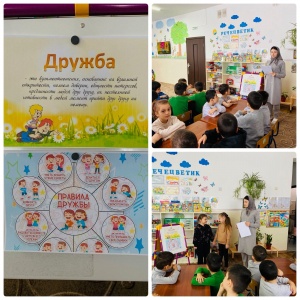В МБДОУ «ДЕТСКИЙ САД» ИРС» «СТ. КУРДЮКОВСКАЯ» с воспитанниками средней группы "Светлячок" проведено занятие по ФЦКМ на тему : "О дружбе и друзьях"Цель: воспитывать дружеские взаимоотношения между детьми.