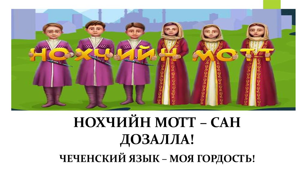 Цхьана а деших, ахчанах эца а, терзанца оза а йиш йоцу хазна ю ненан мотт. Дуьненан къаьмнех вай къасториг а, вайх къам дийриг а – иза нохчийн мотт бу. Цунах доьзна ду вовшийн уьйраш, гергарло, хазахетар, халахетар, халкъан сий, къонахчун яхь, адамаллин хьекъал, кхетам…