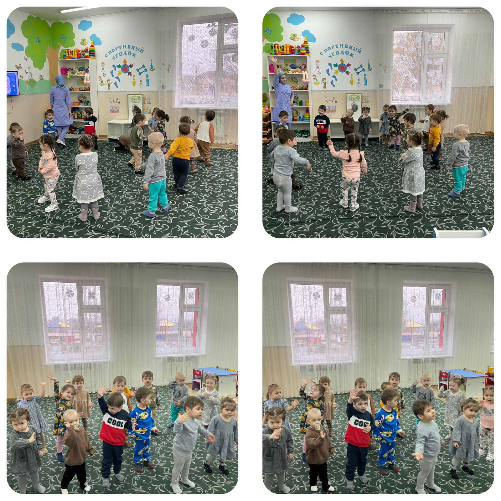 05.12.2024В МБДОУ «ДЕТСКИЙ САД» ИРС» «СТ. КУРДЮКОВСКАЯ» воспитателем Х.Ш.Бешировой с воспитанниками группы раннего возраста "Радуга”проведена ООД по”Художественно-эстетическому развитию“(музыка) на тему:”Прогулка и сон"1 Музыкально-ритмические движения:Побуждать передавать игровые образы,ориентироваться в пространстве.2 Слушание:Учиться слушать песенку,развивать речь.3 Пение:Развивать речевую активность детей.4 Повижные игры,пляска:Учить детей выполнять простые танцевальные движения по показу воспитателя.