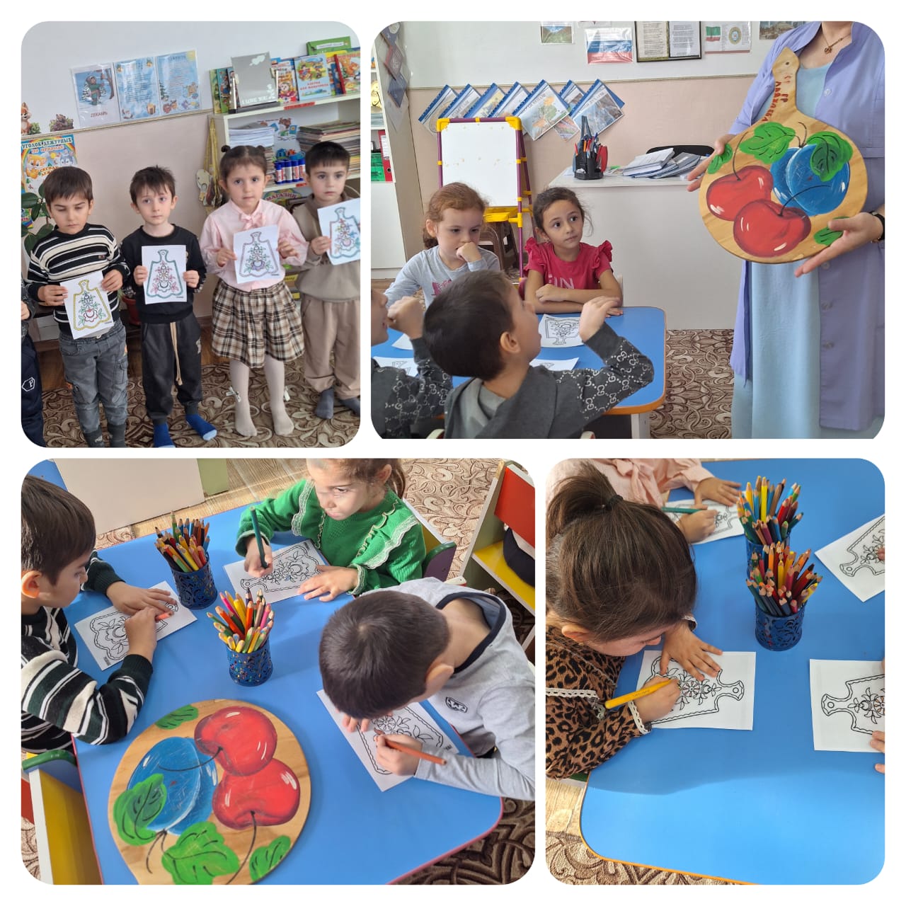 17.01.2025В МБДОУ «ДЕТСКИЙ САД» ИРС» «СТ. КУРДЮКОВСКАЯ» воспитателем З.Х.Дарамовой с воспитанниками старшей группы "Светлячок" проведена ООД по Художественно-эстетическому развитию (рисование) на тему: «Городецкая роспись».Цель: продолжать знакомить детей с городецкой росписью. Развивать художественный вкус.