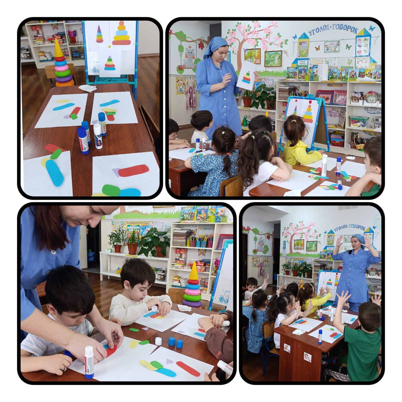 22.01.2025В МБДОУ «ДЕТСКИЙ САД» ИРС» «СТ. КУРДЮКОВСКАЯ» воспитателем Ж.С.Геримовой с воспитанниками средней группы "Звездочка" проведена ООД по "Художественно-эстетическому развитию" (аппликация) на тему: «В магазин привезли красивые пирамидки».Цель: Учить подбирать цвета, развивать цветовое восприятие. Учить располагать круги от самого большого к самому маленькому.