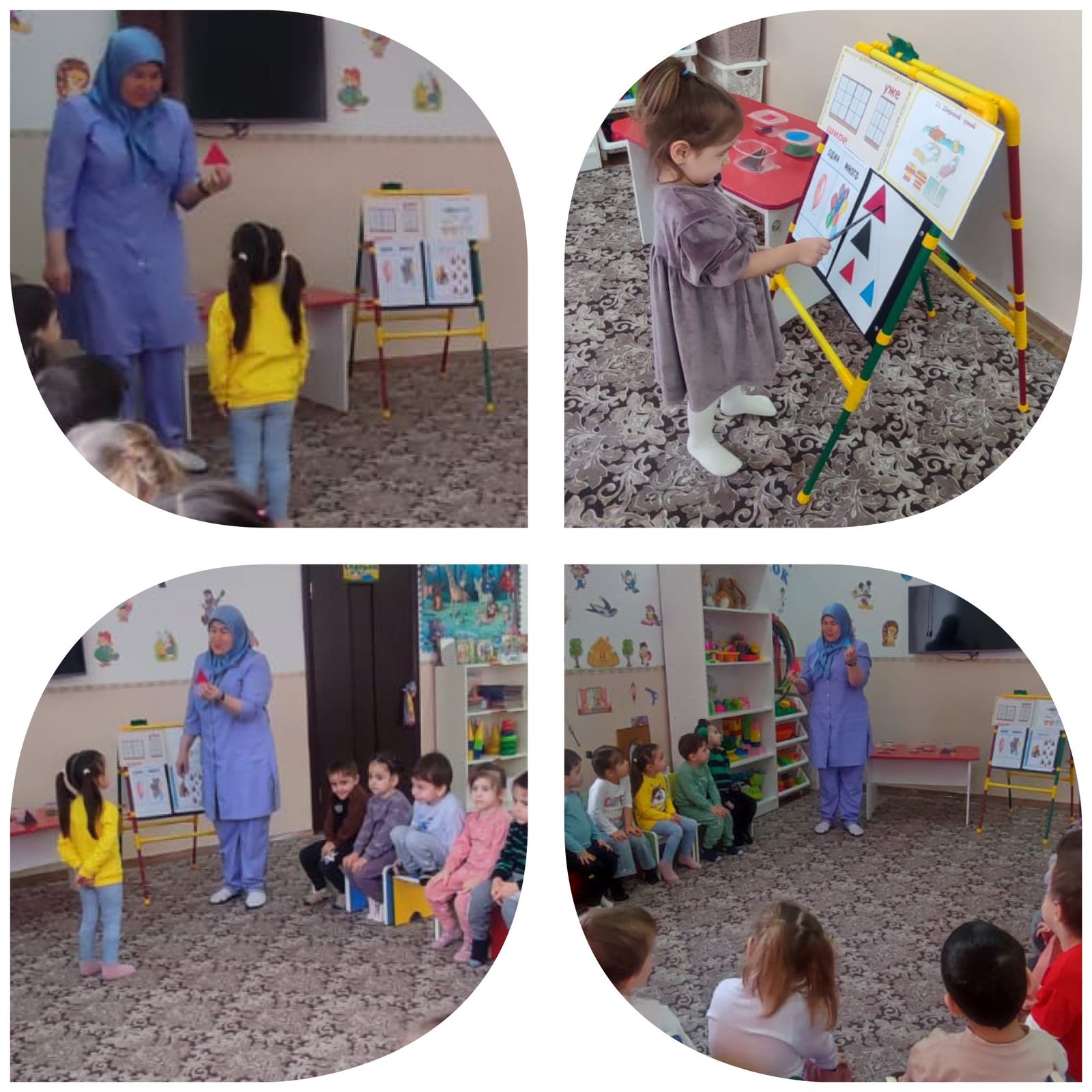 В МБДОУ «ДЕТСКИЙ САД» ИРС» «СТ. КУРДЮКОВСКАЯ» воспитателем З.К.Солтамурадовой с воспитанниками младшей группы "Улыбка"проведена ООД по ФЭМП занятие 17Цель: познакомить с треугольником: учить различать и называть фигуру.