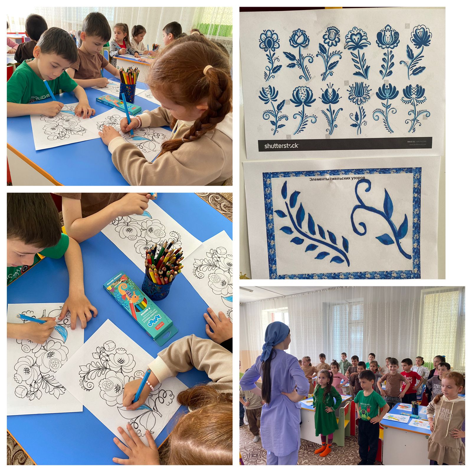 21.04.2025В МБДОУ «ДЕТСКИЙ САД» ИРС» «СТ. КУРДЮКОВСКАЯ» с воспитанниками старшей группы "Светлячок" проведено занятие по "Художественно-эстетическому развитию" (рисование) на тему: «Гжельские узоры» . Цель: продолжать знакомить детей с гжельской росписью. Развивать эстетическое восприятие, чувство ритма, композиции, цвета. Формировать умение рисовать элементы, характерные для гжельской росписи. Развивать мелкую моторику.