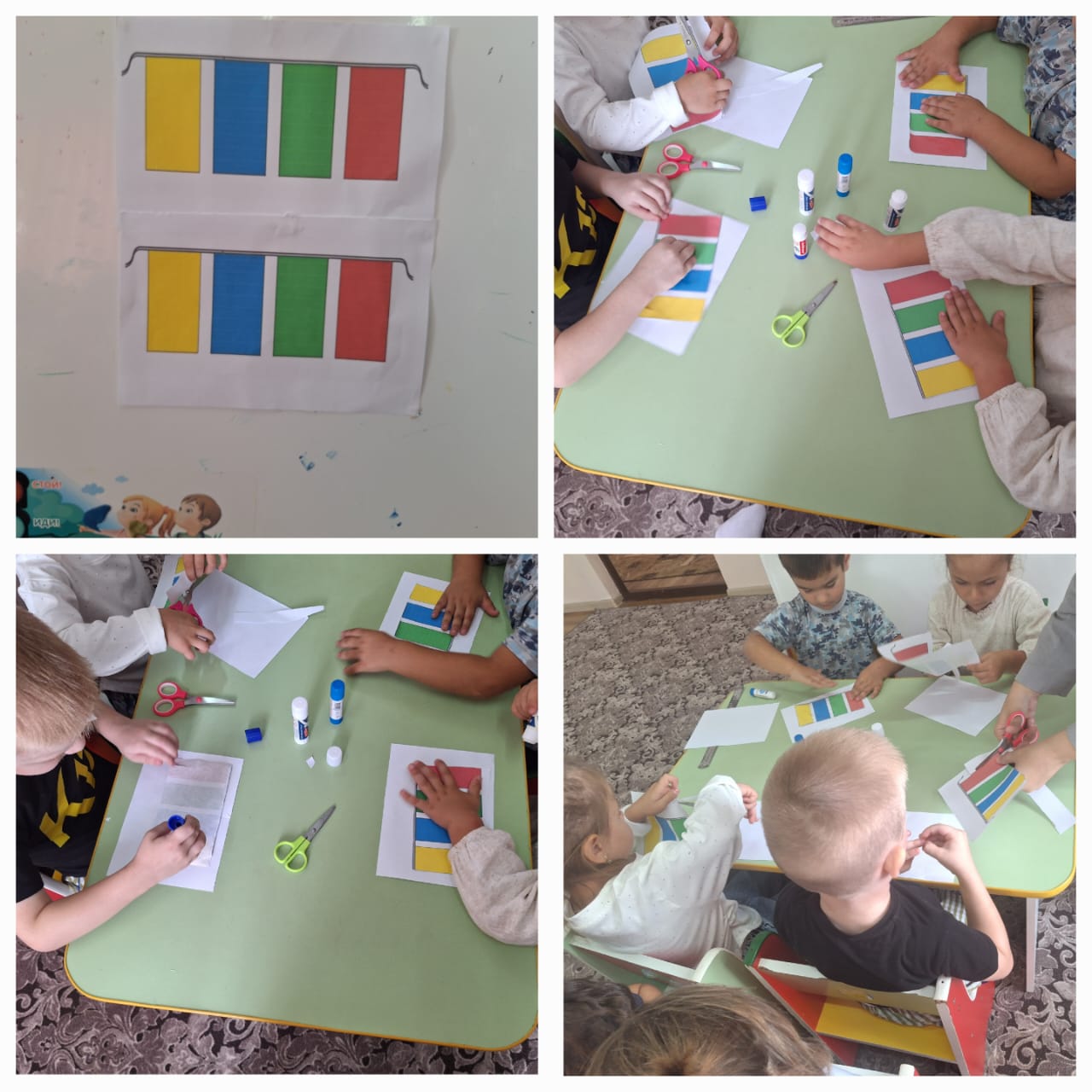 11.09.2025В МБДОУ «ДЕТСКИЙ САД» ИРС» «СТ. КУРДЮКОВСКАЯ» с воспитанниками средней группы "Улыбка" проведено занятие по "Художественно- эстетическому развитию(аппликация) на тему: "Красивые флажки"Цель: учить правильно держать ножницы, сжимать и разжимать кольца, резать полоску по узкой стороне на одинаковые отрезки – флажки;