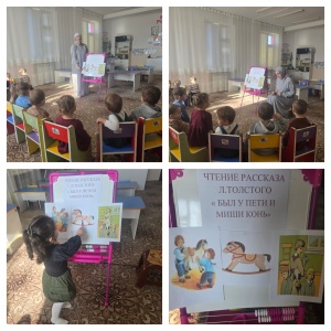 23.10.2025В МБДОУ «ДЕТСКИЙ САД» ИРС» «СТ. КУРДЮКОВСКАЯ» с воспитанниками группы раннего возраста"Лунтик" проведено занятие по "Развитию речи" на тему: Чтение рассказа Л.Толстого "Был у Пети и Миши конь"Цель:познакомить детей с новым произведением.